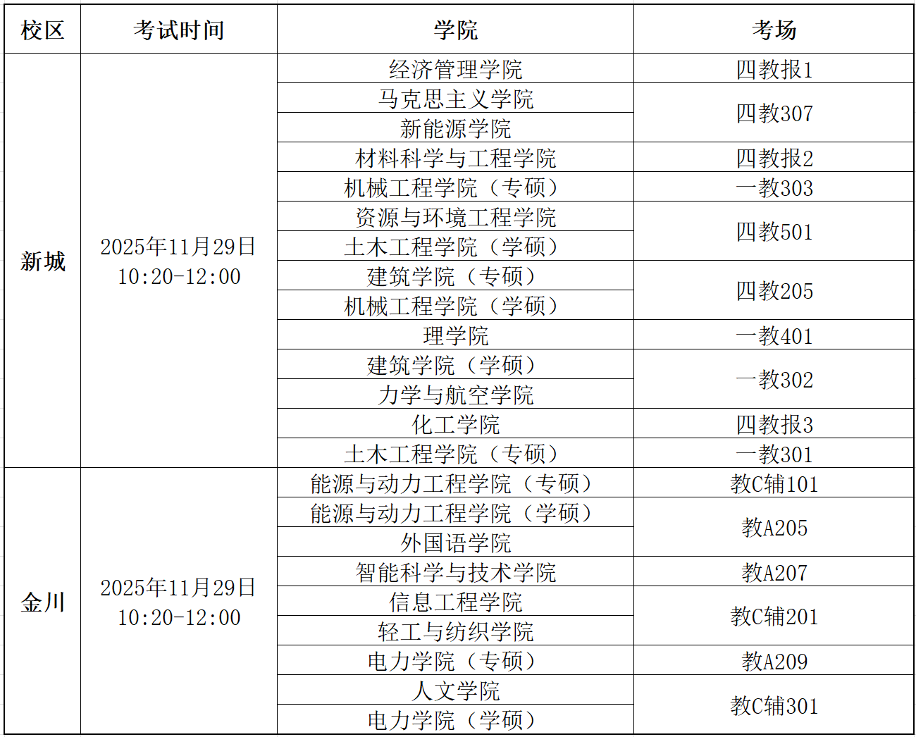 2025-2026学年第一学期“新时代中国特色社会主义理论与实践”课程考试安排